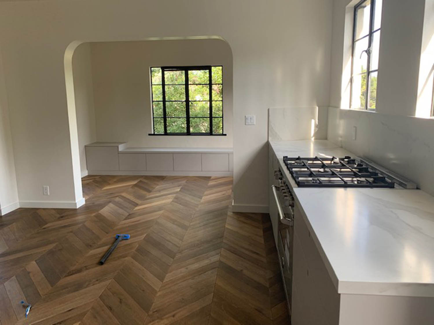 The original steel windows were restored. The oak floors were refinished. We installed HVAC, soundproofed the rooms, rewired the unit in full, and added a washer and dryer, practical interventions folded into the fabric of the place. The kitchen and bathroom were taken down and rebuilt entirely, with an eye toward utility, yes, but also rhythm, light, and the daily pleasure of use.